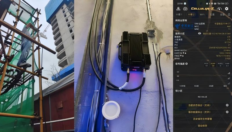 Pejabat jualan terletak di tingkat tengah bangunan, dikelilingi oleh bangunan bertingkat tinggi, mewujudkan persekitaran gangguan isyarat yang kompleks. Selepas ujian,kekuatan isyarat dalamanhanya 1-2 grid, malah menunjukkan keadaan "tiada perkhidmatan". Cabaran terutamanya datang dari tiga aspek: